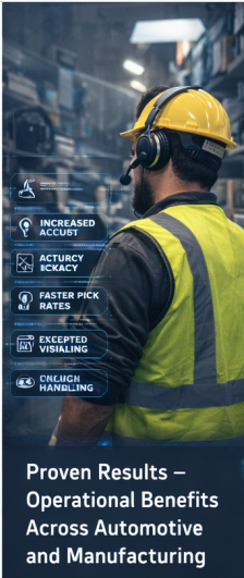 Voice picking delivers measurable improvements in operational performance across manufacturing, automotive, distribution, and retail environments. Organizations typically experience: